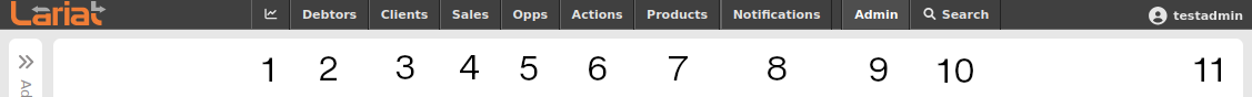 - Admin Menu: All of the administrative functions of Lariat. Much of what the collectors do from their collection screen can be done from the Admin side, in a less-streamlined way.